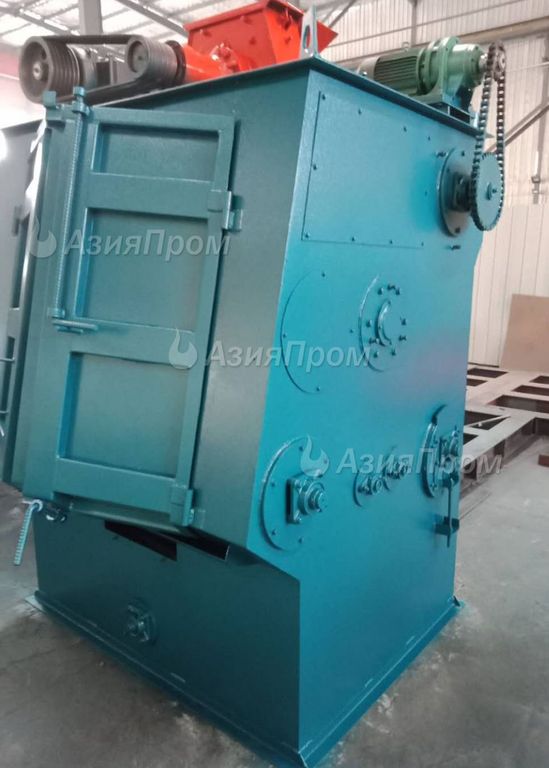 - стальным, выполненным в виде пластин барабанным замкнутым транспортёром – для очистки средних и крупных изделий.